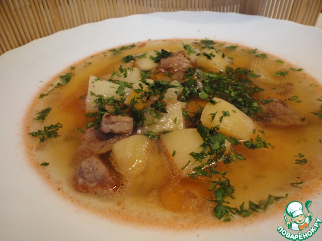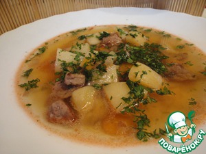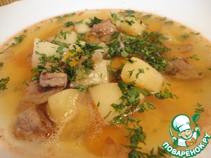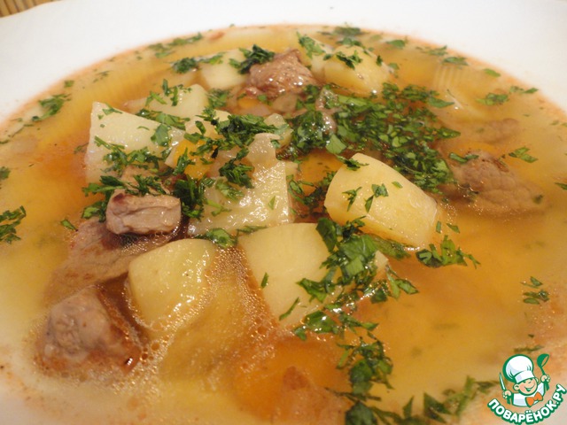 В оригинальном рецепте этот суп готовится на воде, но я предпочитаю варить на курином бульоне. Бульон я готовила вечером, а утром варила суп.
