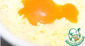 Масло взбить добела с сахаром 65 г и цедрой и, не переставая взбивать, ввести по одному желтки. -