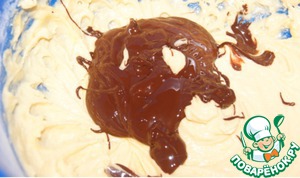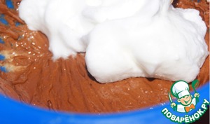 В два приема соединить шоколадную массу с белками, каждый раз перемешивая методом складывания снизу вверх и по кругу. -