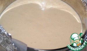 8. Поместить тесто в форму 24 см в диаметре, дно застелить пекарской бумагой и ничем не смазывать.