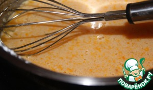 11. Отжать набухший желатин и растворить в 2-х столовых ложках воды, ввести в яичную смесь, перемешать. Добавить ликёр, перемешать.