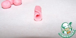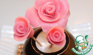 24. Так же поступаем с оставшимися марципановыми шариками, каждый раз делая их чуть большего размера. Так же лепим бутоны. Края лепестков подкрутить и расправить с помощью зубочистки.