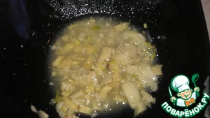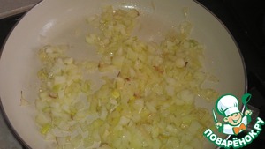 Тут же начинаю готовить чечевицу, т. к она готовится примерно около минут 40. Мелко шинкую репчатый лук. Кидаю его на сковородку с горячим оливковым маслом и обжариваю до прозрачности лука.
