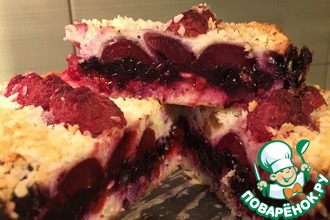 Крем. Я делала в этот раз творожный. Взбить 500мл 35% сливок с сахарной пудрой до пиков и отложить в сторону. Взбить мягкий творог или творожный сыр с пудрой до воздушной консистенции (я еще лимонного сока добавила, чтобы не приторно было). Лопаткой ввести взбитые сливки и аккуратно перемешать, чтобы не опал крем.
