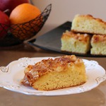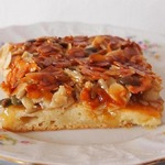 Рецепт я модифицировала и приготовила довольно удачный вариант с карамелизированным грецкими орехом. А в тесто я добавила столовую ложку корицы. Сочетание корица - грецкий орех - карамель получилось очень гармоничное. Только форму я в следующий раз возьму не 26 см диаметром, а побольше. Будет пирожок не на 5, а на 5 с плюсом!