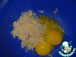 В миске, отдельно берем 3 желтка и 4 столовые ложки натертого хрена (можно взять предварительно замороженный, или целый корень поставить в морозилку на 30 мин, и натереть, тогда он не будет выедать глаза при натирании). Желтки и хрен перетереть вместе.