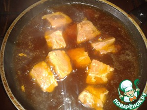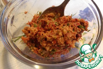 Потом смешать с мясом и бульоном (в мясе должно остаться приблизительно 150 г бульона).