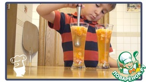 1) Нарежьте мелко дольки апельсина, засыпьте их сахаром и спустя 5 минут разложите их по стаканам.