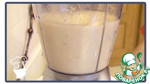 1) Нарежьте банан на кружочки и размельчите его в миксере вместе с "Мультивитамином", овсяными хлопьями и творогом. -