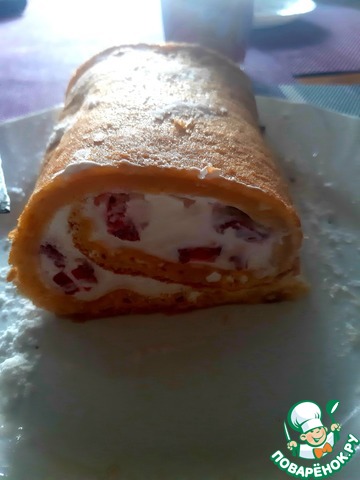 Это мой любимый рецепт рулета. Пеку его все лето с разной ягодой и фруктами. Сейчас начался сезон клубники, а для меня - лето! Крем очень простой, но в тоже время очень нежный и ароматный! Попробуйте, это очень вкусно!!!