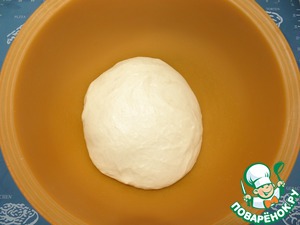 Когда тесто замесится, перекладываю его в миску, накрываю пленкой и кладу в немного нагретую духовку для подъема. |