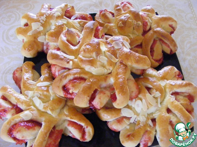 Предлагаю Вашему вниманию простой рецепт булочек. Джем в рецепте можно использовать Ваш любимый, но именно черные семена киви украшают эти булочки. Формовка булочек довольно известная. Попробуйте приготовить, очень вкусно!