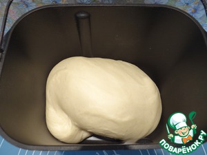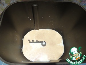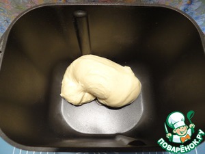 Помещаем ведерко в хлебопечку и включаем режим замеса теста. Даем тесту в теплом месте увеличиться в объеме в 2-3 раза.