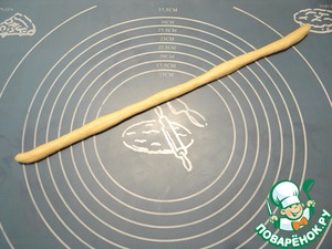 Из большого кусочка теста раскатываем жгут,