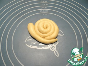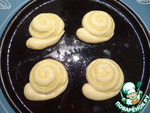 Аккуратно переносим "улитку" на противень, смазанный растительным маслом. Я выпекала "улитки" на 2-х противнях.