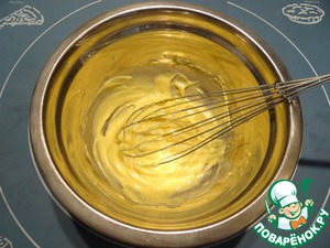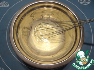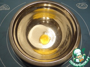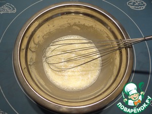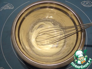 Венчиком взбиваем желток и сахар до получения белой пышной массы.