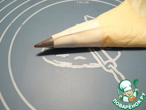Заварной крем перекладываем в кондитерский мешок или шприц с насадкой с круглым отверствием.