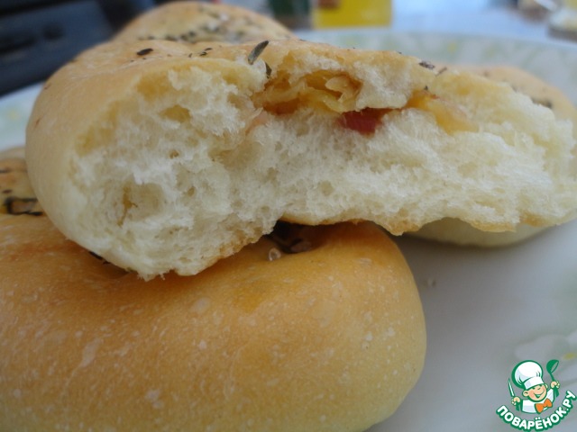 Начинка у меня была - сало, перец болгарский и лук-порей обжаренные в масле.