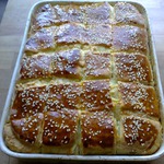 Предлагаю Вашему вниманию замечательную сербскую выпечку. Вместо сыра автор рецепта Nastasja (спасибо ей за замечательный рецепт) предлагает также использовать бекон или сметану. Хоть и не у всех ингредиентов автор указала количество (я взяла на свое усмотрение), пирог получился очень вкусный! Пеку его уже не первый раз. И, как верно подметила автор, на следующий день после выпечки пирог еще вкуснее! Обязательно попробуйте приготовить эту выпечку!
