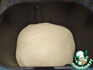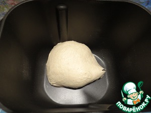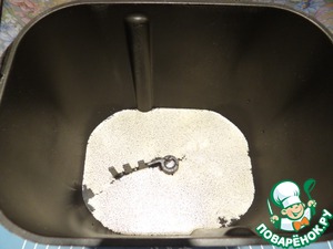 Помещаю ведерко в хлебопечку, включаю режим замеса теста.