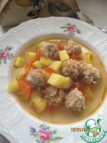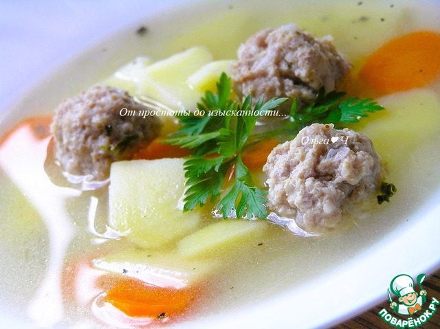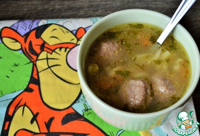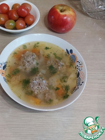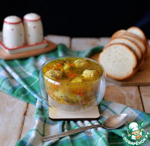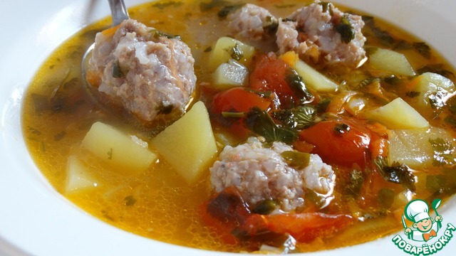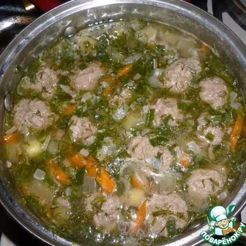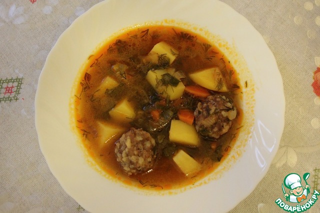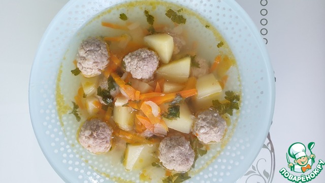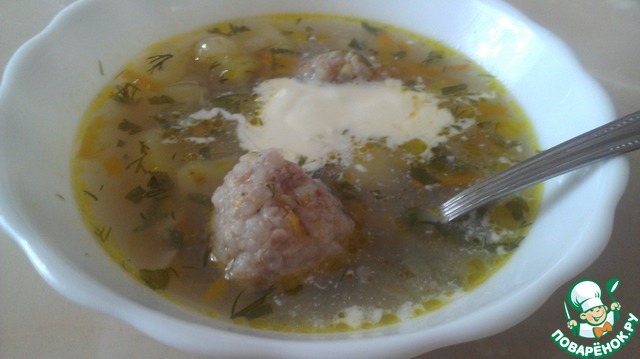 По желанию заправить приправой из трав и специй. Суп с фрикадельками готов!