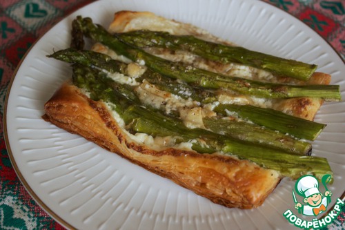 Если, как у меня, у Вас осталась спаржа после ризотто, и этого количества ни туда, ни сюда, то этот быстрый рецепт тарта на закуску будет самое то.