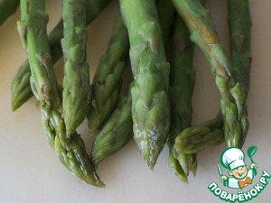 Отварить спаржу в соленой воде 5 мин. до мягкости, предварительно отрезав жесткие ножки.