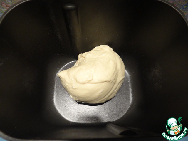 Поместить ведерко в хлебопечку, включить режим замеса теста.