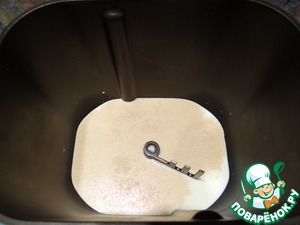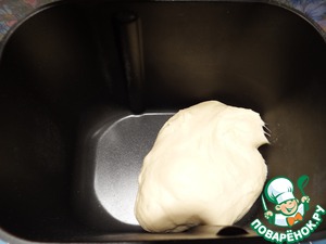 Помещаю ведерко в хлебопечку и включаю режим замеса теста.