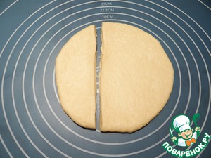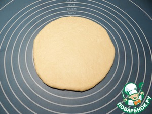 Беру один кусочек теста, раскатываю круг диаметром около 17-18 см.