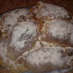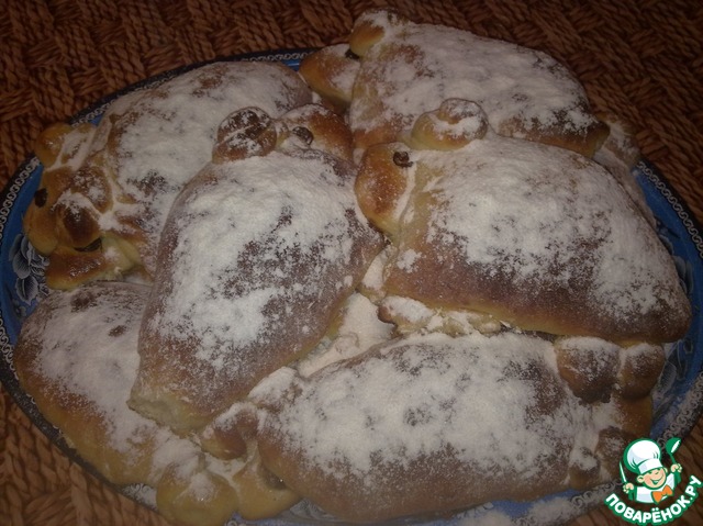 Для начинки я планировала применить конфеты "Коровка", купила заранее пачку таких конфет, сынок их увидел, пришлось угостить одной. Он приметил, куда я их убрала... Когда вчера утром рано, пока все спасли, стала готовить выпечку, и дело дошло до начинки... В общем, осталось только 2 конфетки! Хорошо, что был припрятан понадежнее мягкий ирис.