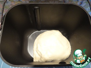 Помещаем ведерко в хлебопечку, включаем режим замеса теста. Даем тесту в теплом месте увеличиться в объеме в два-три раза.