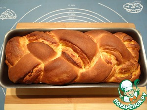 Смазываем форму растительным маслом, укладываем одну косу из теста в форму.