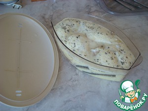 Рыбу заливаем смесью для омлета.