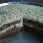 Сверху все еще промазать кремом, уложить верхушку, намазать ее кремом (я добавляла в него шоколад).