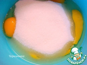 Добавить растопленное и охлажденное сливочное масло, сметану и взбить. Теперь всыпаем муку и разрыхлитель и все хорошо еще раз взбиваем.