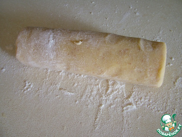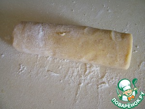Сформировать из теста "колбаску" диаметром 3-4 см. Завернуть в пищевую пленку и положить в морозилку не менее чем на 2 часа.