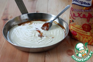 Когда весь сахар превратится в жидкую карамель, понемногу вливайте горячие сливки, быстро и аккуратно перемешивая карамель. Аккуратно! Карамель может брызгаться! От перепада температур карамель немного загустеет, но потом вновь станет жидкой.