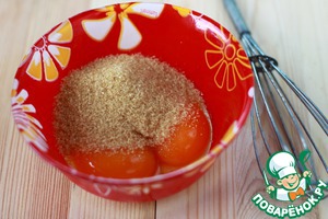 Взбейте венчиком 2 желтка с 40 гр сахара.