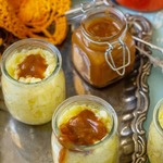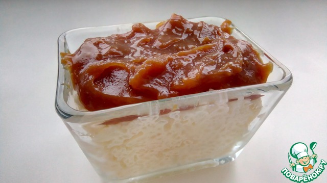 Разложите рисовую кашу в порционные стаканчики и залейте карамелью. Можно карамель украсить кристаллами крупной морской соли.