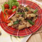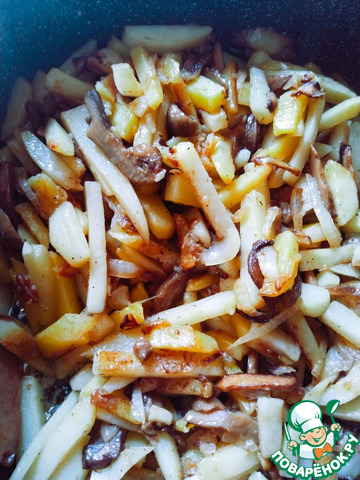 [+5]грибы использовала грузди соленые( вымоченные, порезанные и обсушенные, жидкости было совсем немного в них при жарке) по вкусу просто пушка