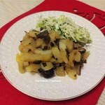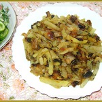 Когда картофель почти готов, солим по вкусу и добавляем лавровый лист. Перемешиваем и жарим до готовности. Картошку я подаю с капустным салатом. Приятного аппетита!