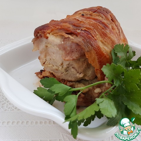 Берем подчеревок свиньи (брюшная часть), снимаем шкурку. Разрезаем кусок вдоль, не доходя до края, и раскрываем как книгу.