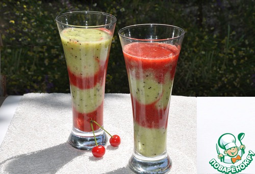 В высокие бокалы выкладываем слоями поочередно 2 пюре. Получаем очень полезный и вкусный коктейль