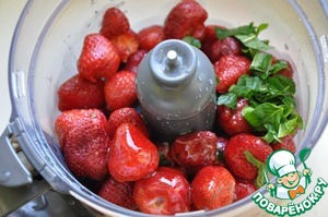 Клубнику промываем, удаляем плодоножки. Мяту мелко режем. Так же добавляем 2 ложки меда и взбиваем.