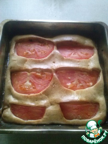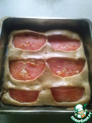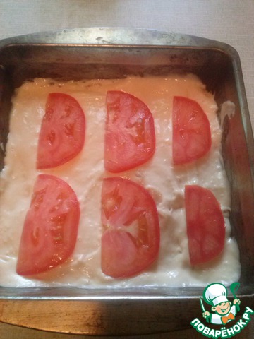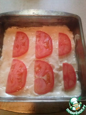 • На сковороду (форму для выпекания) выложить капусту и залить тестом. Сверху выложить нарезанные помидоры.
