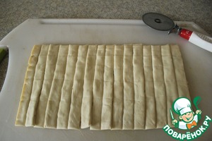 Нарезаем тонкими полосками (удобно это делать пиццерезкой)
