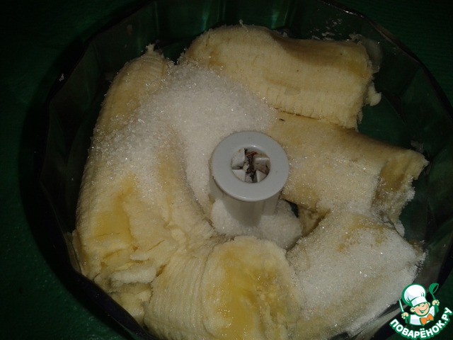 • Бананы с ванильным сахаром перемолоть блендером в однородную кашицу.