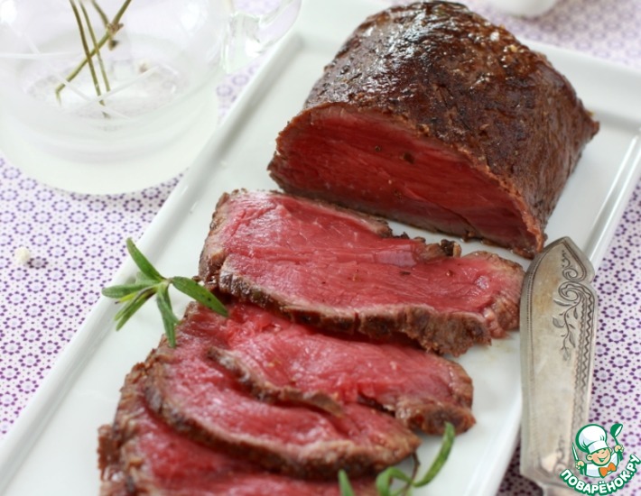 Еще один вариант приготовления вкуснейшей говяжьей вырезки - нежной, сочной, ароматной. Больше, пожалуй, и добавить в описание мне нечего, напишу просто одно слово - РОСТБИФ!