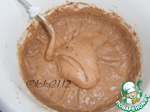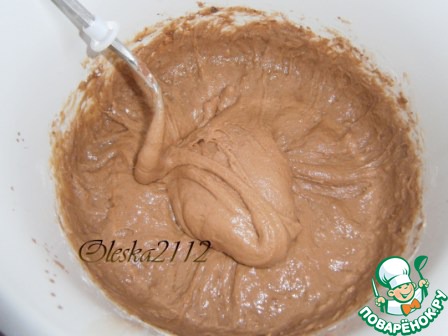 В тёмное тесто добавляем вишню. Выкладываем в смазанную маслом и посыпанную мукой (манкой) форму.